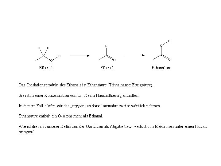 Ethansäure : Ethansaure Physikalische Eigenschaften Herstellung Und Verwendung : Formuliert für die herstellung von ethansäure aus ethanol die reaktionsgleichung in strukturformeln mit bindenden und nichtbindenen elektronenpaaren.